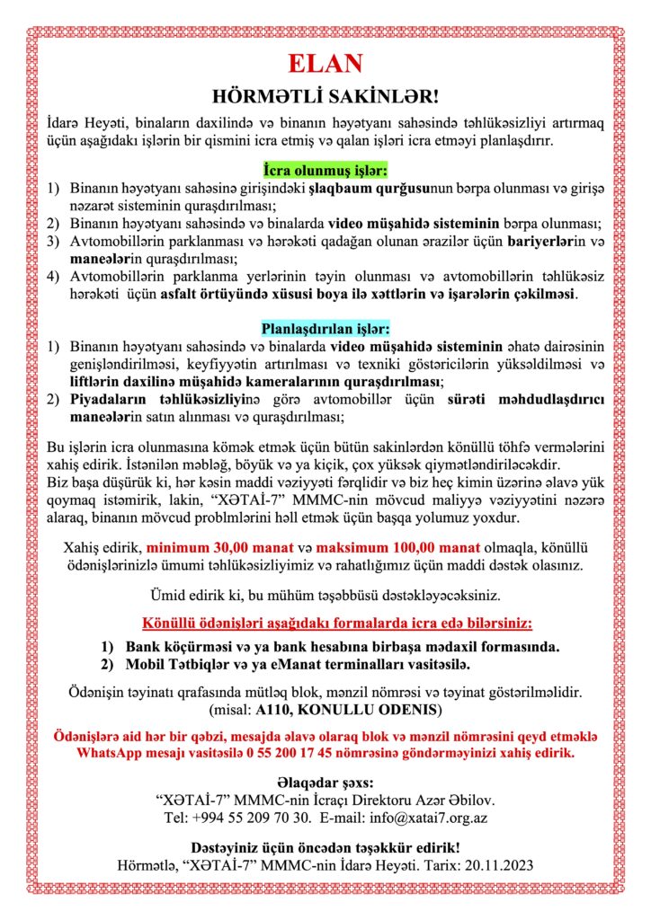 Binaların daxilində və binanın həyətyanı sahəsində təhlükəsizliyi artırmaq üçün tədbirlər-2 Posted on 20.11.202311.01.2024 by Admin