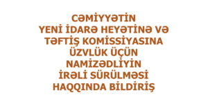 BİLDİRİŞLƏR CƏMİYYƏTİN YENİ İDARƏ HEYƏTİNƏ VƏ TƏFTİŞ KOMİSSİYASINA ÜZVLÜK ÜÇÜN NAMİZƏDLİYİN İRƏLİ SÜRÜLMƏSİ HAQQINDA BİLDİRİŞ