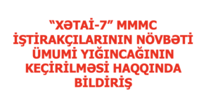 BİLDİRİŞLƏR “XƏTAİ-7” MMMC İŞTİRAKÇILARININ NÖVBƏTİ ÜMUMİ YIĞINCAĞININ KEÇİRİLMƏSİ HAQQINDA BİLDİRİŞ – 17.11.2025