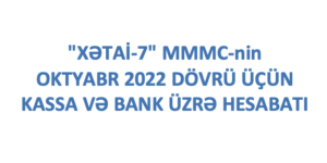 HESABATLAR OKTYABR 2022 DÖVRÜ ÜÇÜN KASSA VƏ BANK ÜZRƏ HESABAT “XƏTAİ-7” MMMC-nin OKTYABR 2022 DÖVRÜ ÜÇÜN KASSA VƏ BANK ÜZRƏ HESABATI