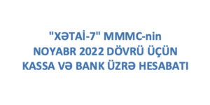 HESABATLAR NOYABR 2022 DÖVRÜ ÜÇÜN KASSA VƏ BANK ÜZRƏ HESABAT “XƏTAİ-7” MMMC-nin NOYABR 2022 DÖVRÜ ÜÇÜN KASSA VƏ BANK ÜZRƏ HESABATI